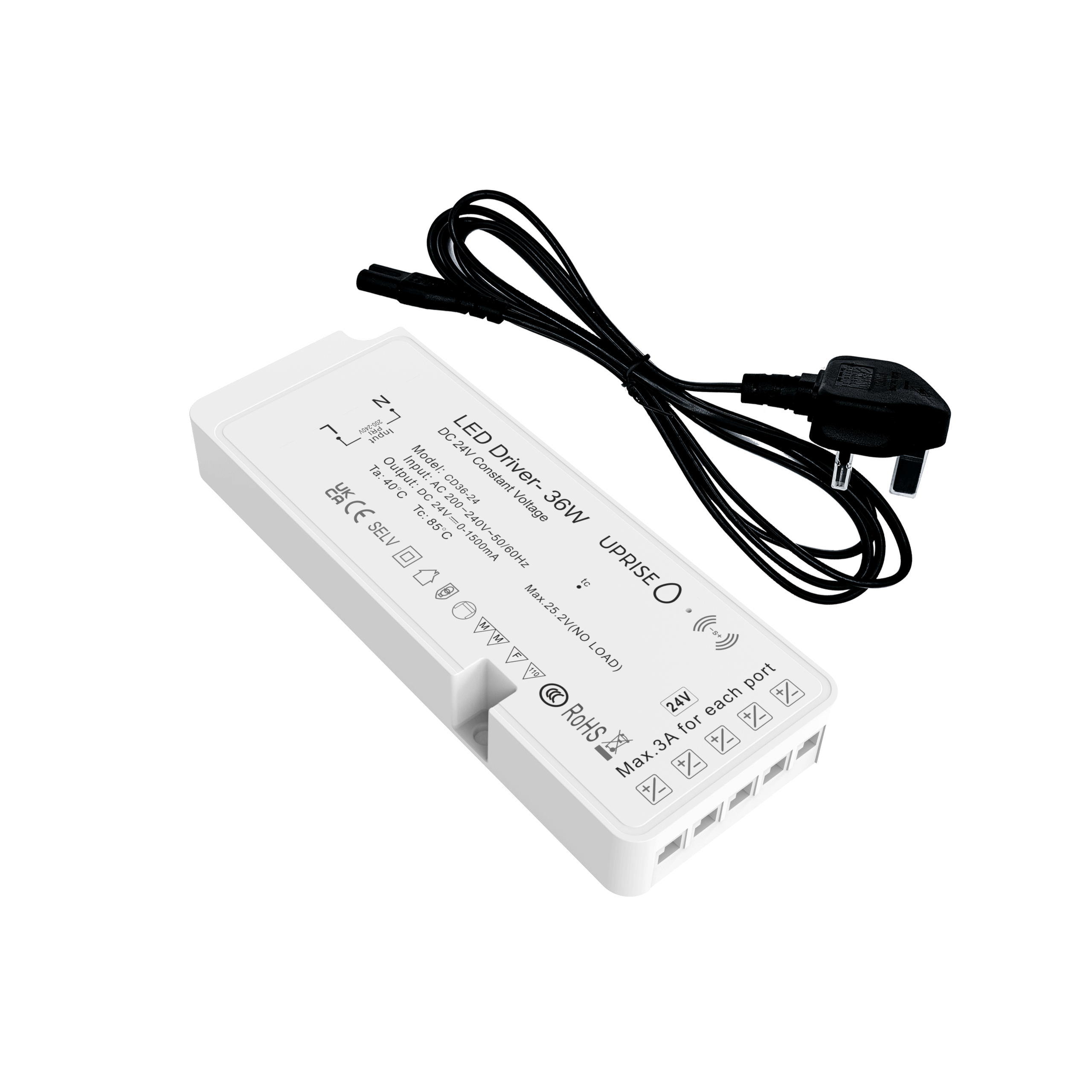 It's ideal for areas where space is limited and a thin 24V LED power source is required. With it’s 36W load capacity and 5 LED ports, up to x5 24V LED products / LED strips can be connected effortlessly.