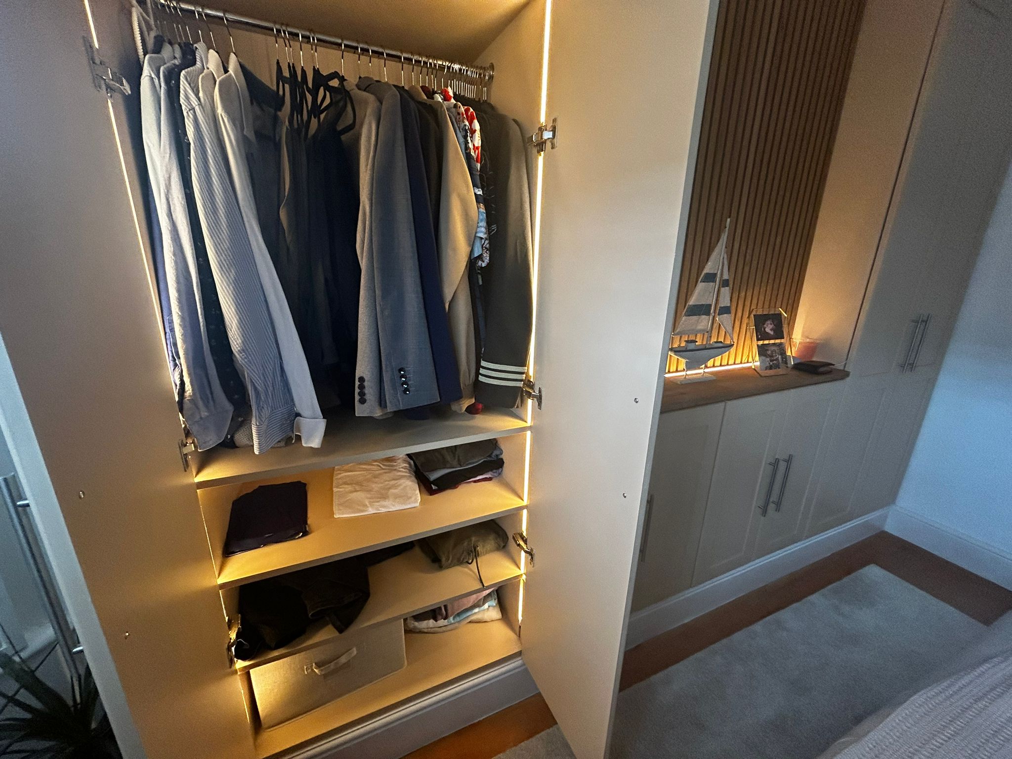 2) Plug & Play Furniture System w/sensor: UK Mains > 2M UK plug to C7 mains lead > 24W / 60W Furniture LED Driver (24V) > Furniture Sensors > 24V COB LED strip light